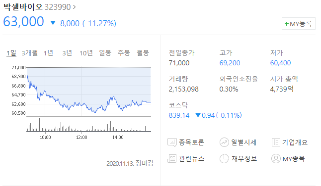 세번째 종목은 박셀바이오 (323990) 입니다.